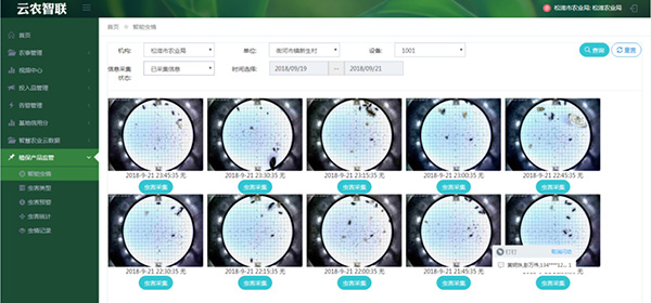 在無人監(jiān)管的情況下,可自動完成誘蟲、殺蟲、蟲體分散、拍照、運輸、收集、排水等系統(tǒng)作業(yè),并與無線模塊相連,把數(shù)據(jù)發(fā)送至服務器端;進行病蟲害統(tǒng)計與分析功能;并在網(wǎng)頁端顯示識別的蟲子種類及數(shù)量,根據(jù)識別的結(jié)果,對蟲害的發(fā)生與發(fā)展進行分析和預測,為現(xiàn)代農(nóng)業(yè)提供服務,滿足蟲情預測預報及標本采集的需要。